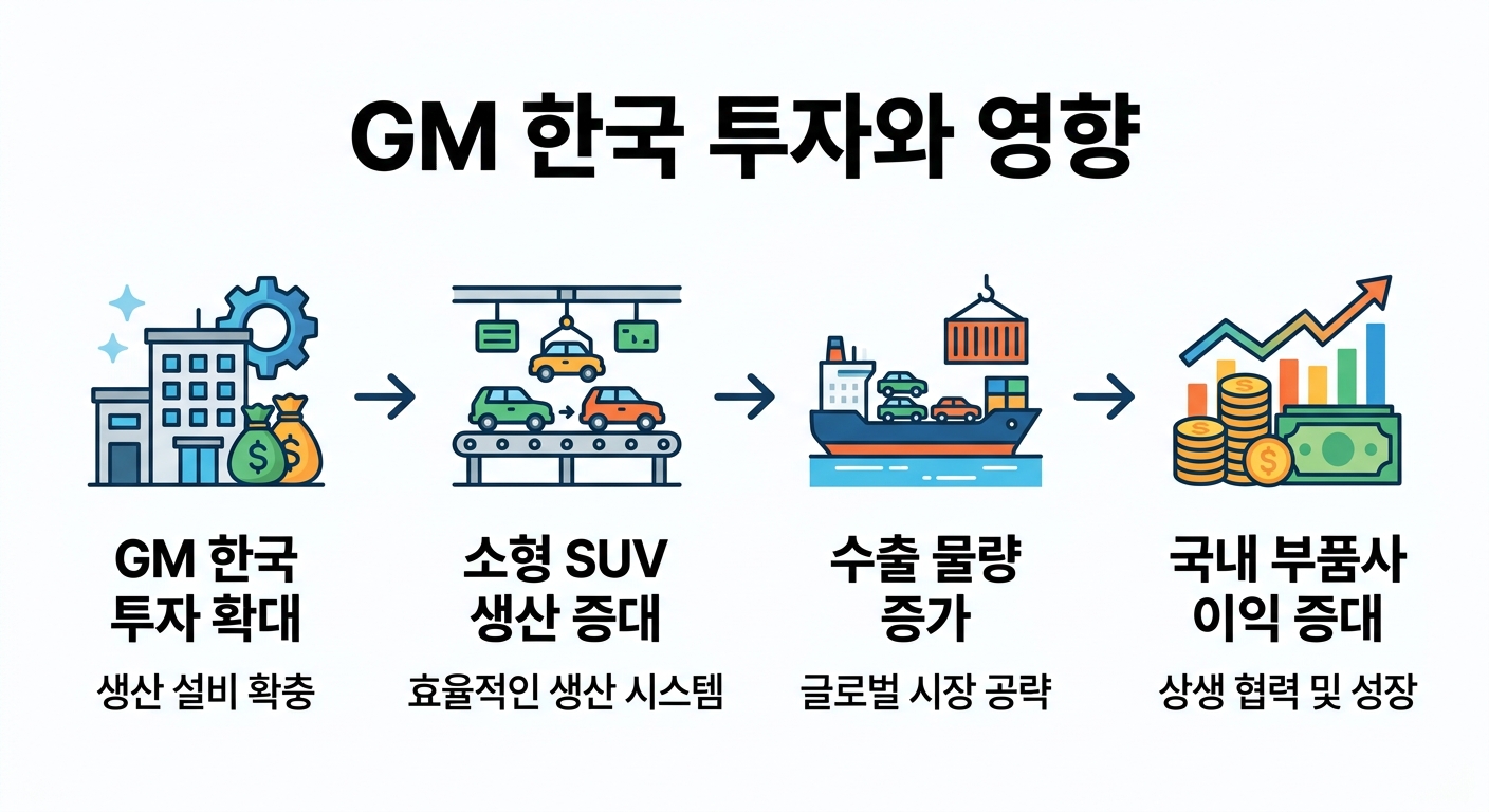 개인투자자가 특히 주목해야 할 포인트는 수출 물량의 폭발적인 증가 가능성입니다. 생산 라인이 효율화되고 신규 투자가 본격 집행되면, 전 세계로 뻗어나가는 막대한 수출 물량 증가에 따라 GM 밸류체인에 속한 국내 부품사들의 구조적이고 장기적인 실적 턴어라운드가 시작될 가능성이 매우 높습니다. 이는 테마성 상승이 아닌, 확실한 실적에 기반한 견고한 주가 우상향을 견인할 원동력입니다.