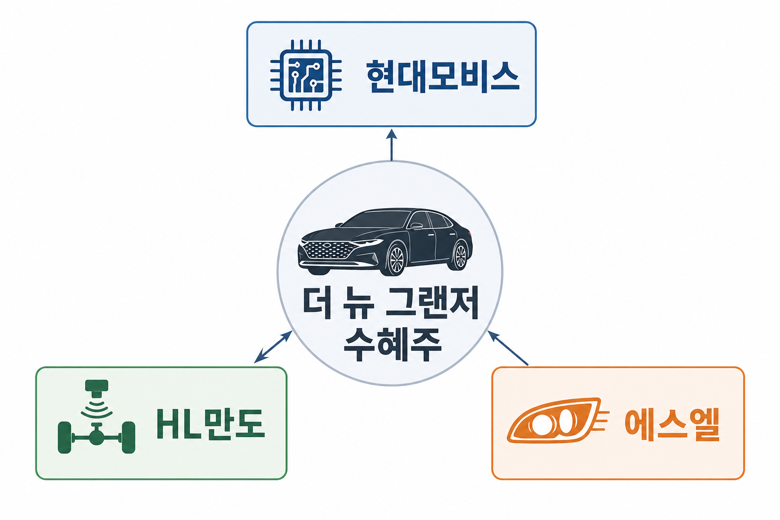 그렇다면 어떤 기업들을 관심 종목에 두고 지켜봐야 할까요? 그랜저 신차 사이클과 직접적인 실적 연관성을 가진 핵심 부품주 3곳을 정리했습니다.